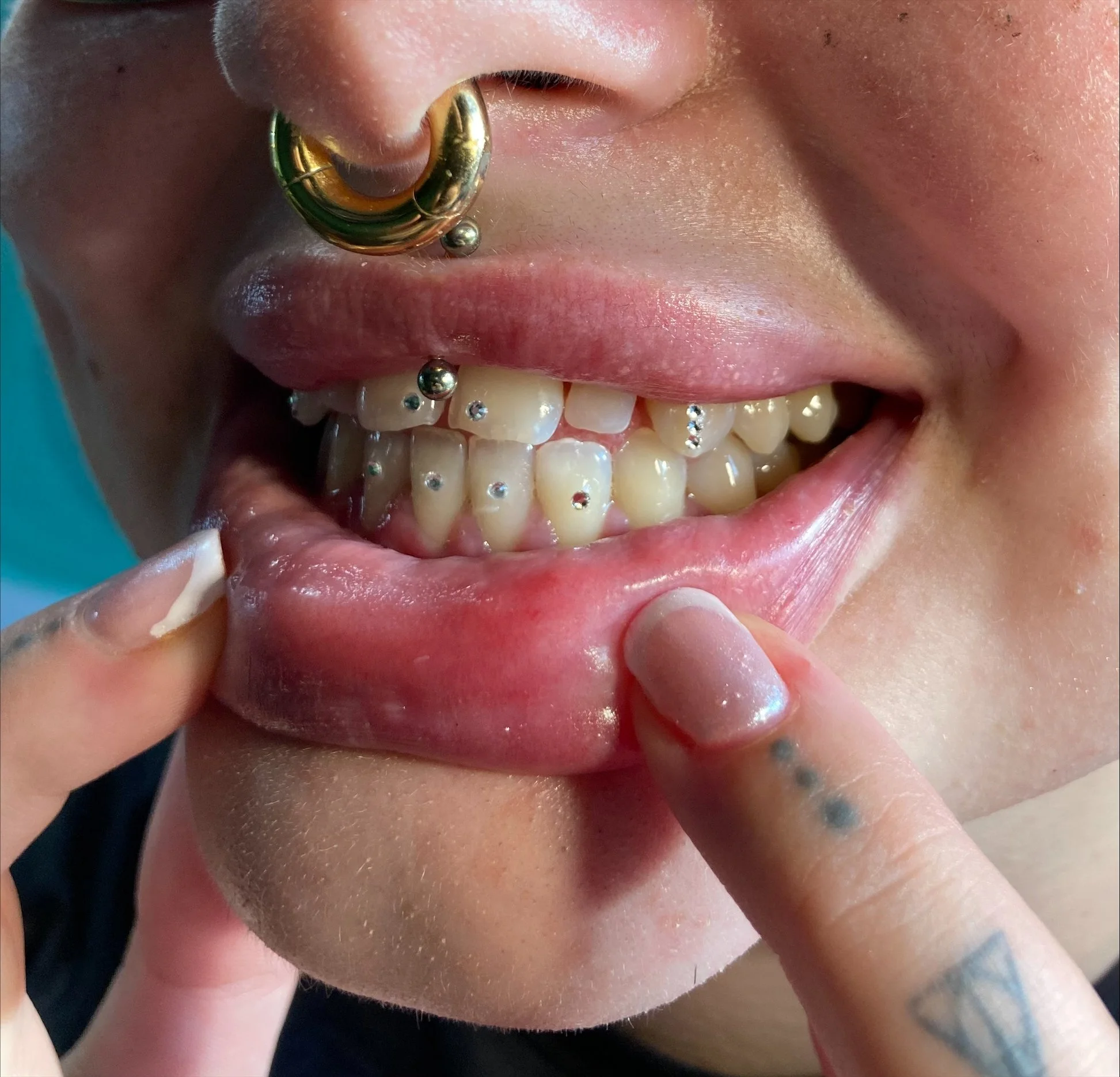HELEN DOES TOOTH GEMS - WANDSWORTHHelen, based at Angelic Hell Tattoo Studio, has been qualified since November 2022. Her favourite applications are light rose gems, raindrops or 3 gem corners. A massive Marvel fan who loves watching all the prediction videos. Helen spends her free time trying all plant based food the world has to offer.
